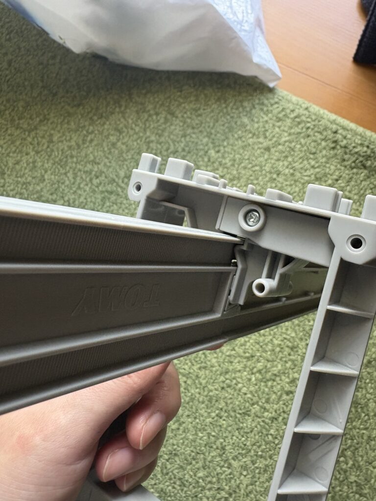 こうやってレールを挟んでいくのですが、なかなかレールにはめるのが難しいです